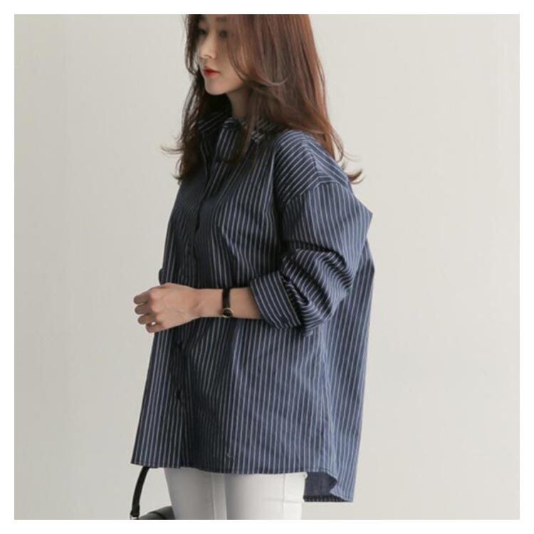 シャツ ブラウス ストライプ柄 ボーイフレンド風 レディース ゆったり 韓国 ファッション コーデ おすすめ カジュアル きれいめ 大きいサイズ 人気 ゆったり 20代 30代 40代 50代
