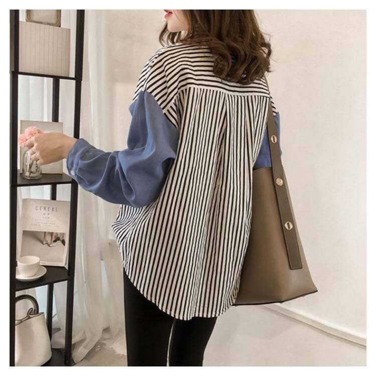 シャツ ブラウス ストライプ柄 ボーイフレンド風 レディース ゆったり 韓国 ファッション コーデ おすすめ カジュアル きれいめ 大きいサイズ 人気 ゆったり 20代 30代 40代 50代