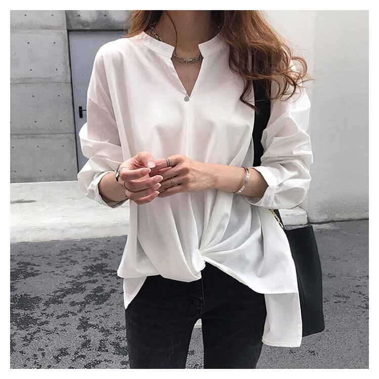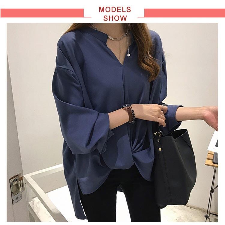 ブラウス シャツ シフォンブラウス Vネック 長袖 襟付き 無地 フロントクロス レディース トップス 韓国 ファッション コーデ おすすめ カジュアル きれいめ 大きいサイズ 人気 ゆったり 20代 30代 40代 50代