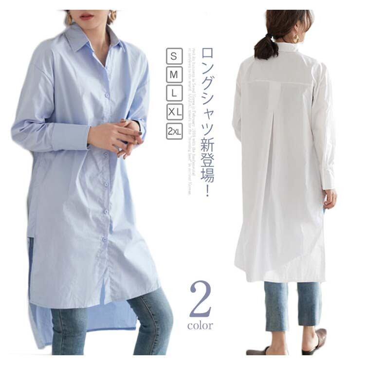 ブラウス シャツ ロングシャツ レディース 長袖 無地 ゆったり カジュアル 韓国 ファッション コーデ おすすめ カジュアル きれいめ 大きいサイズ 人気 ゆったり 20代 30代 40代 50代