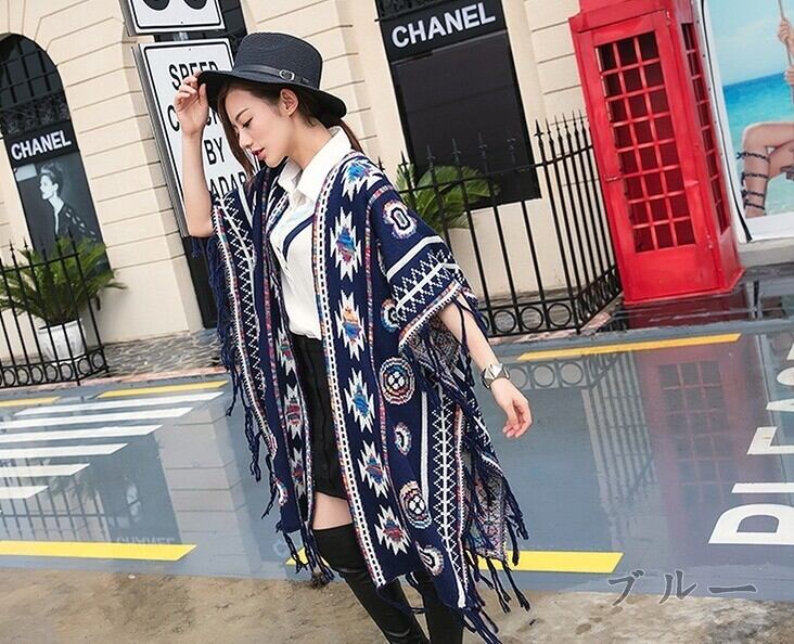 カーディガン レディース 2色 オルテガ エスニック ニット フリンジ カジュアル 6000
