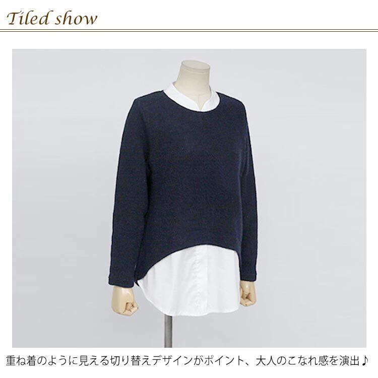 重ね着のように見える切り替えデザインがポイント、大人のこなれ感を演出♪