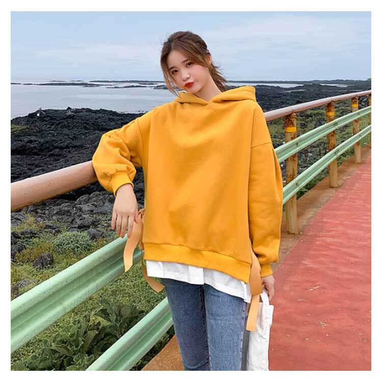 パーカー レディース ビッグシルエット フード付き 重ね着風 無地 サイドリボン 裏起毛 韓国 ファッション コーデ おすすめ カジュアル きれいめ 大きいサイズ 人気 ゆったり 20代 30代 40代 50代