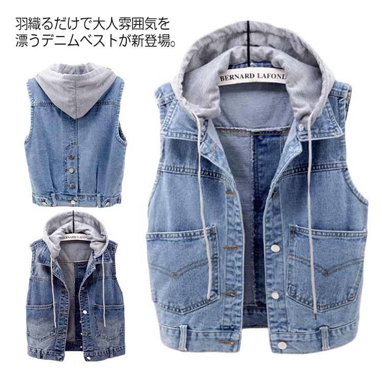 ベスト デニムベスト レディース フード付き ショート丈 大きいサイズ カジュアル 韓国 ファッション コーデ おすすめ カジュアル きれいめ 大きいサイズ 人気 ゆったり 20代 30代 40代 50代