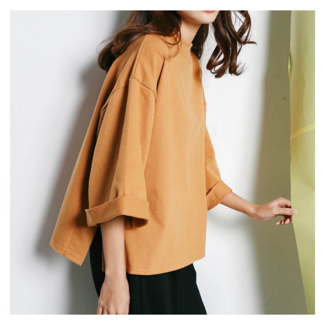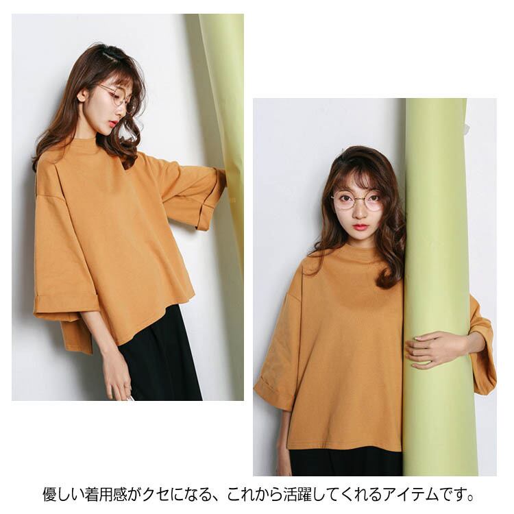 tシャツ カットソー ワイドスリーブトップス 七分袖 レディース 4色 ドロップスリーブ ゆったり 韓国 ファッション コーデ おすすめ カジュアル きれいめ 大きいサイズ 人気 ゆったり 20代 30代 40代 50代