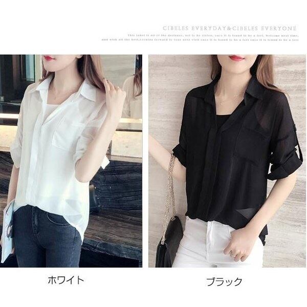 ブラウス 長袖 シャツ レディース シフォン 2色 韓国風 6053