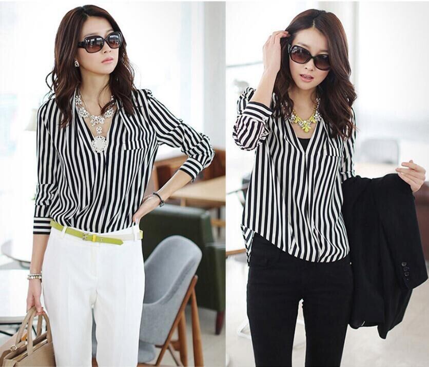 ブラウス レディース ストライプ Vネック ビジネス きれいめ オフィス 韓国 ファッション コーデ おすすめ カジュアル きれいめ 大きいサイズ 人気 ゆったり 20代 30代 40代 50代