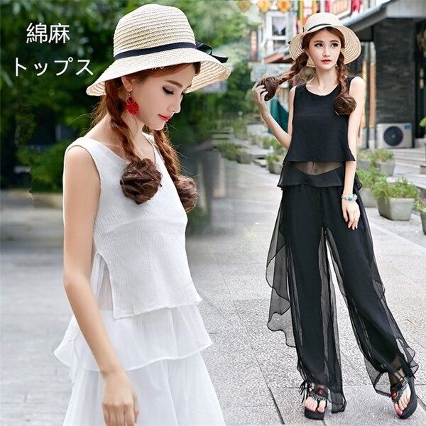 タンクトップ キャミソール レディース 無地 ノースリーブ インナー 綿麻 韓国 ファッション コーデ おすすめ カジュアル きれいめ 大きいサイズ 人気 ゆったり 20代 30代 40代 50代