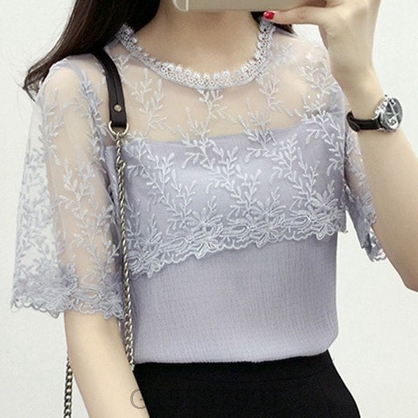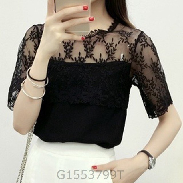ブラウス シースルーレーストップス シャツ 半袖 レディース 6110