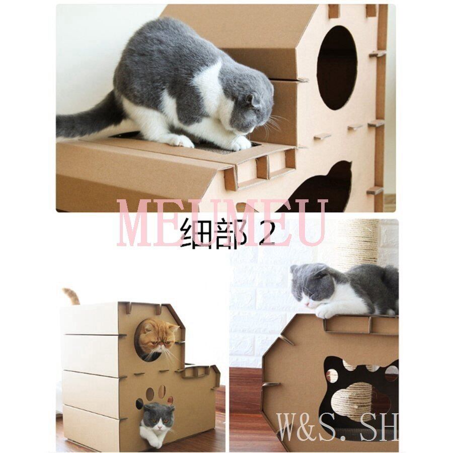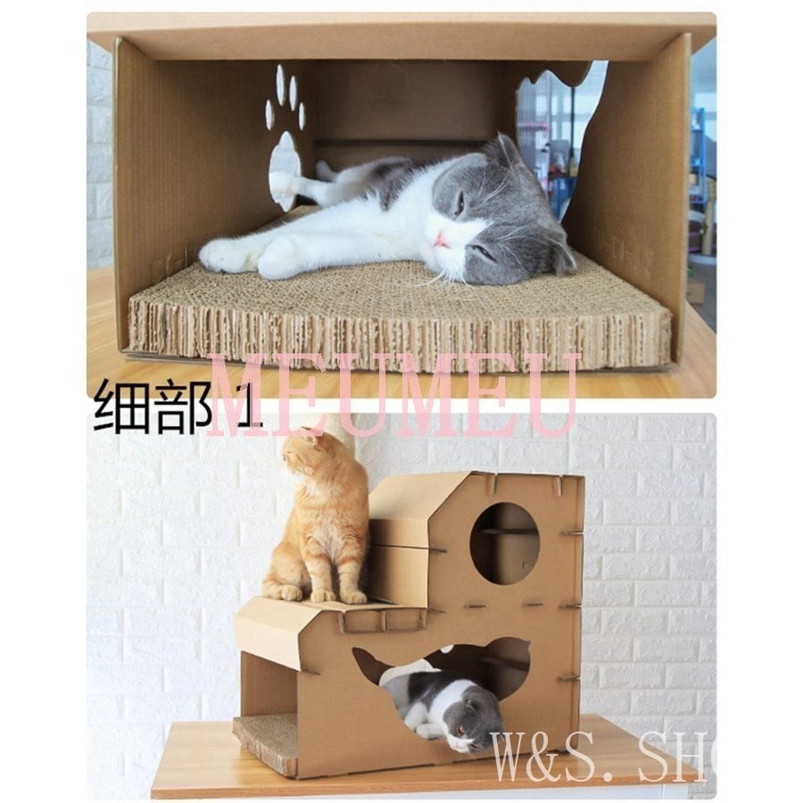 ★特徴:多機能な猫ちゃんハウス。猫爪とぎ付き、丈夫なダンボールを使用してます。