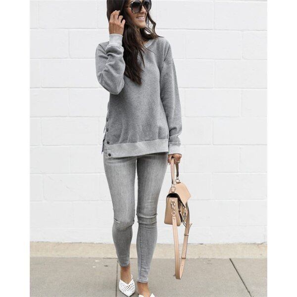★特徴:カジュアル、大人カジュアルコーデにおすすめのスウェット プルオーバー。サイドにスリットが入っていてボタン仕様になっております。裏起毛なので暖かい。