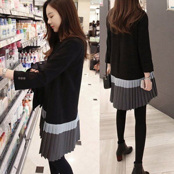 ワンピース レディース 膝丈 長袖 Aライン プリーツ切り替え 韓国 ファッション コーデ おすすめ カジュアル きれいめ 大きいサイズ 人気 ゆったり 20代 30代 40代 50代