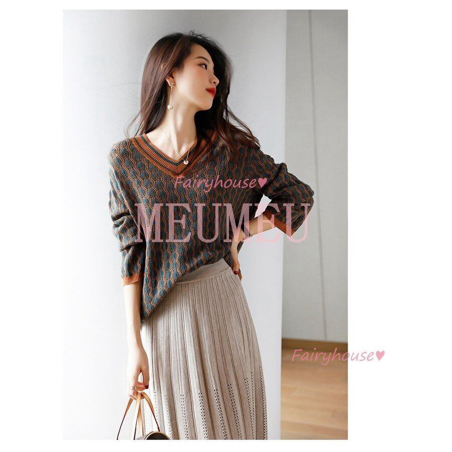 ★特徴:ゆったりめのVネックセーター。春秋のトップス、冬のインナーとして幅広く使えます。個性的な柄でとってもおしゃれですね。