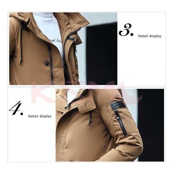ダウンジャケット ダウンコート メンズ 3色 ロング丈 フード付き 細身 無地 厚手 6323