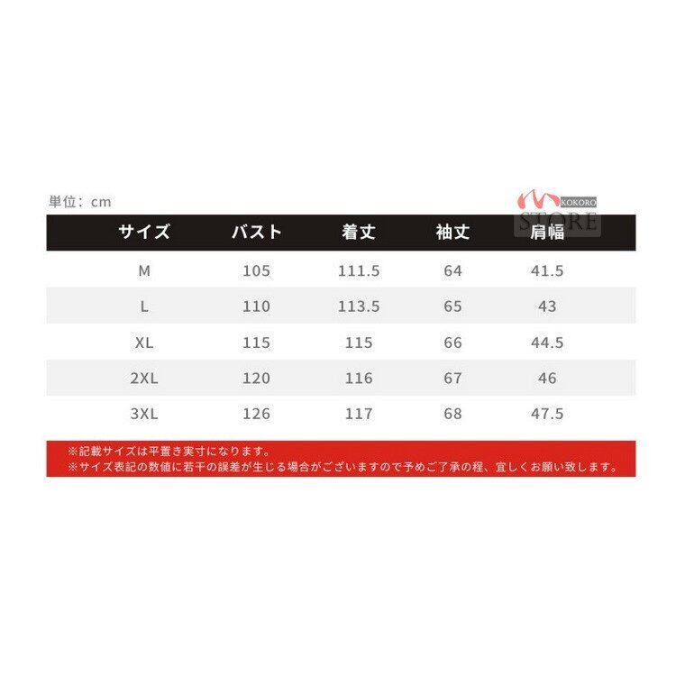 3XL:バスト126 着丈117 袖丈68 肩幅47.5