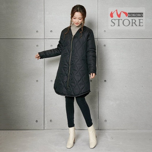 ★特徴:ゆったりめのシルエットのキルティングコート。首周りがあいたデザインになっているので重ね着しやすい。