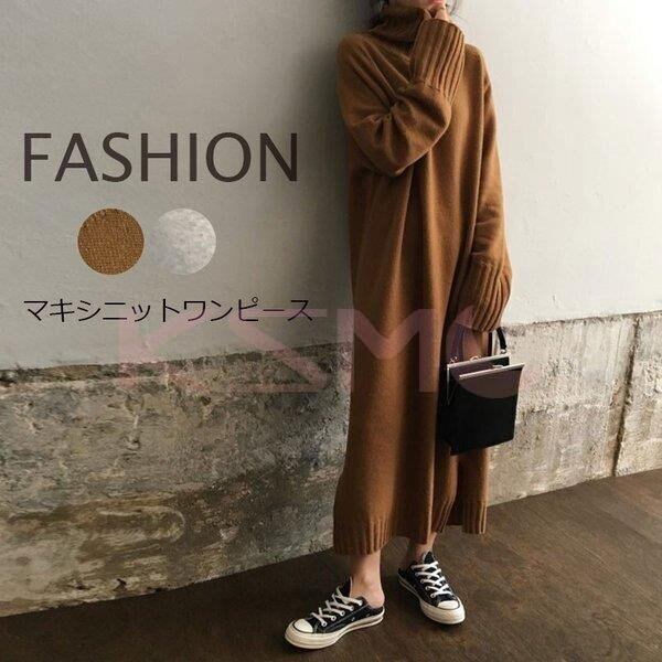 ワンピース マキシワンピース ニット レディース 2色 ロング 秋冬 体型カバー 韓国 ファッション コーデ おすすめ カジュアル きれいめ 大きいサイズ 人気 ゆったり 20代 30代 40代 50代