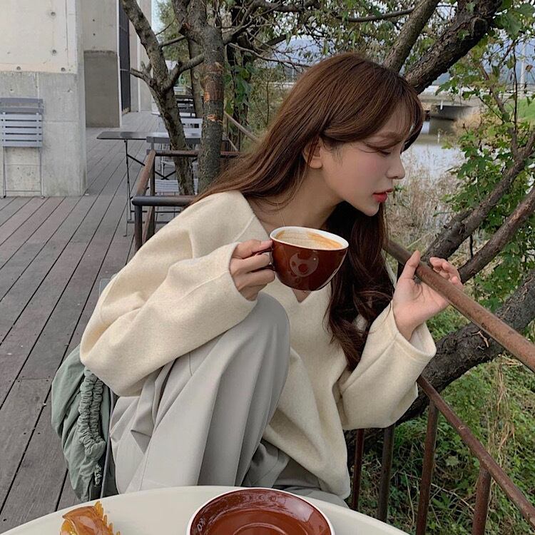 ★特徴:春秋冬におすすめのVネックカットソー。韓国ファッション好きにおすすめです。