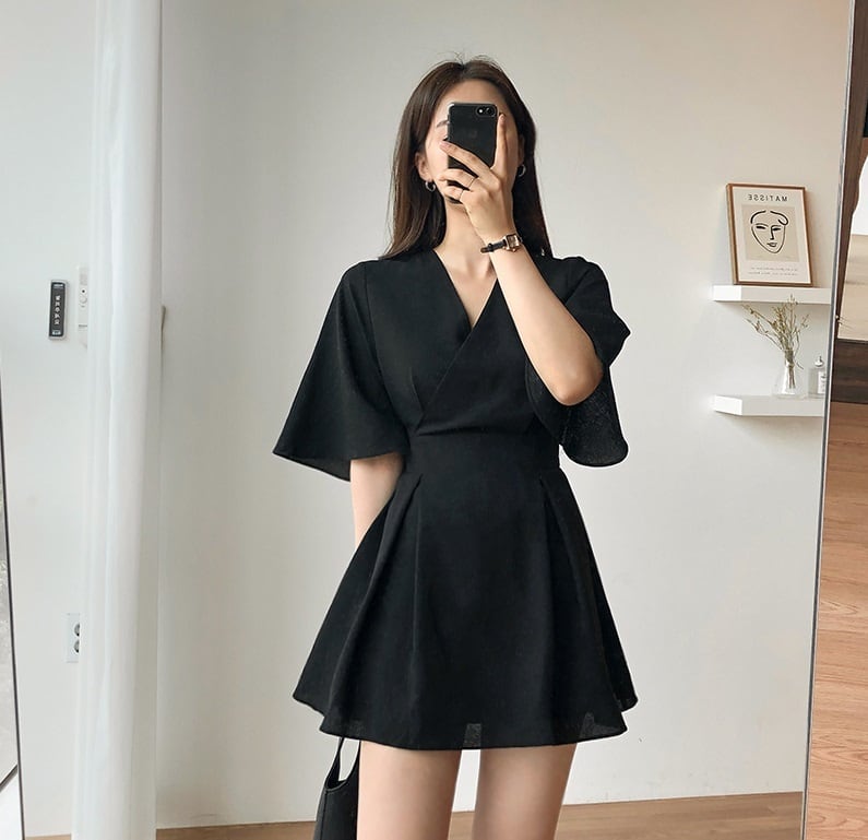 ワンピース レディース 3色 半袖 Vネック Aライン 春夏 韓国 ファッション コーデ おすすめ カジュアル きれいめ 大きいサイズ 人気 ゆったり 20代 30代 40代 50代