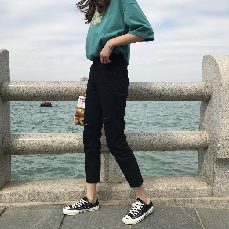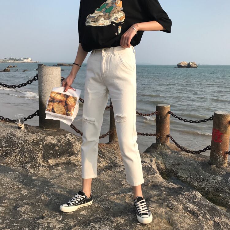 ジーンズ クロップドパンツ レディース 2色 ハイウエスト ダメージ 春夏 韓国 ファッション コーデ おすすめ カジュアル きれいめ 大きいサイズ 人気 ゆったり 20代 30代 40代 50代