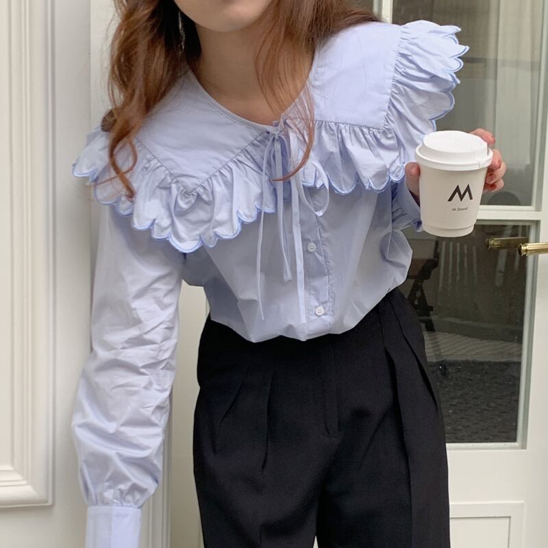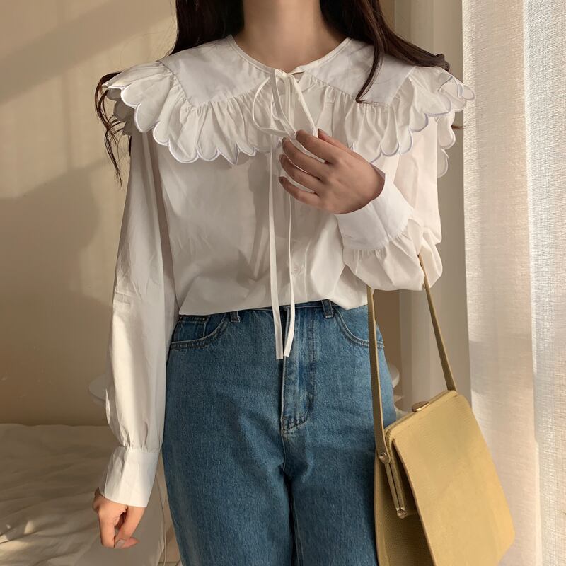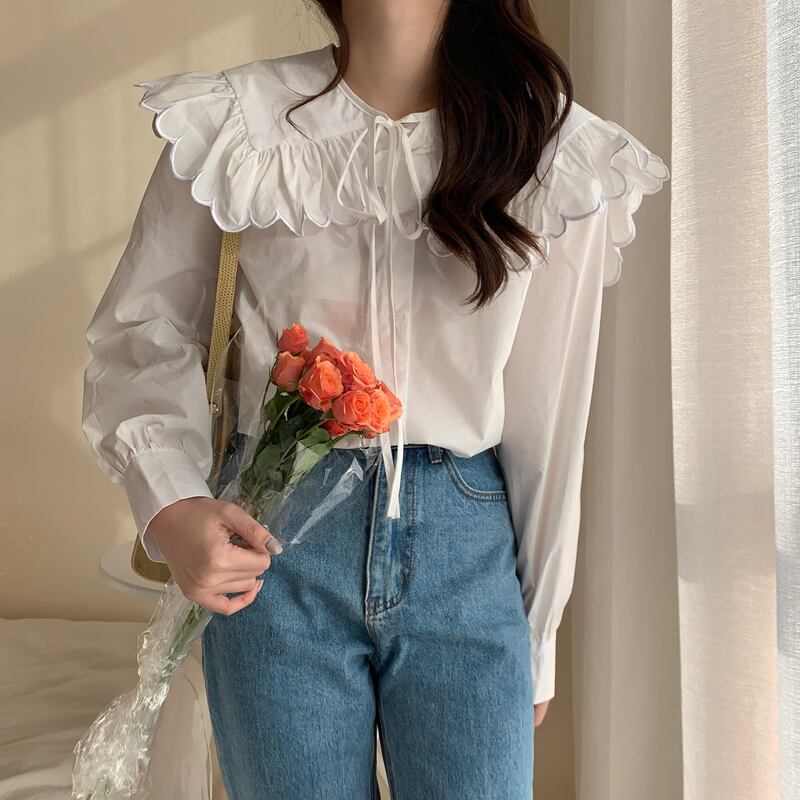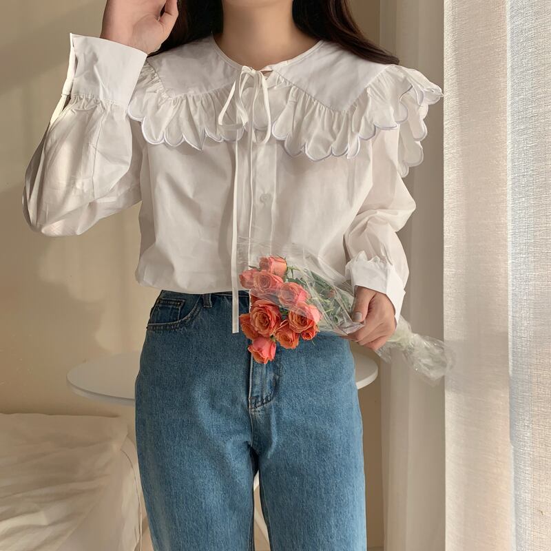 ブラウス シャツ レディース 2色 長袖 長袖ブラウス レース 白 韓国 ファッション コーデ おすすめ カジュアル きれいめ 大きいサイズ 人気 ゆったり 20代 30代 40代 50代