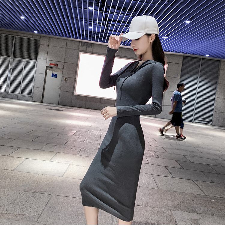 ワンピース レディース 2色 ニットワンピース タイト フード付き 6582a