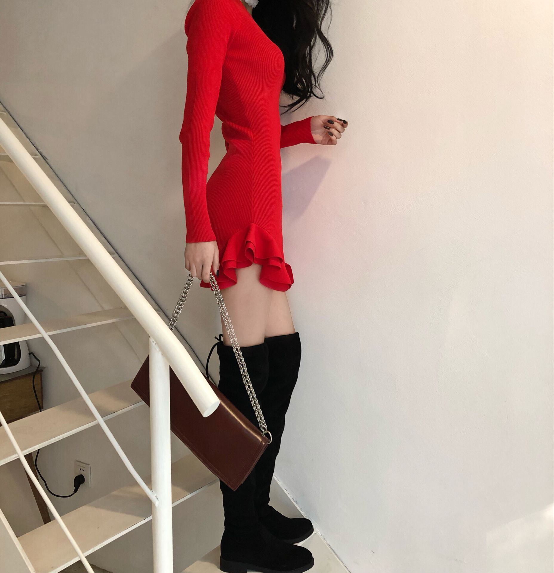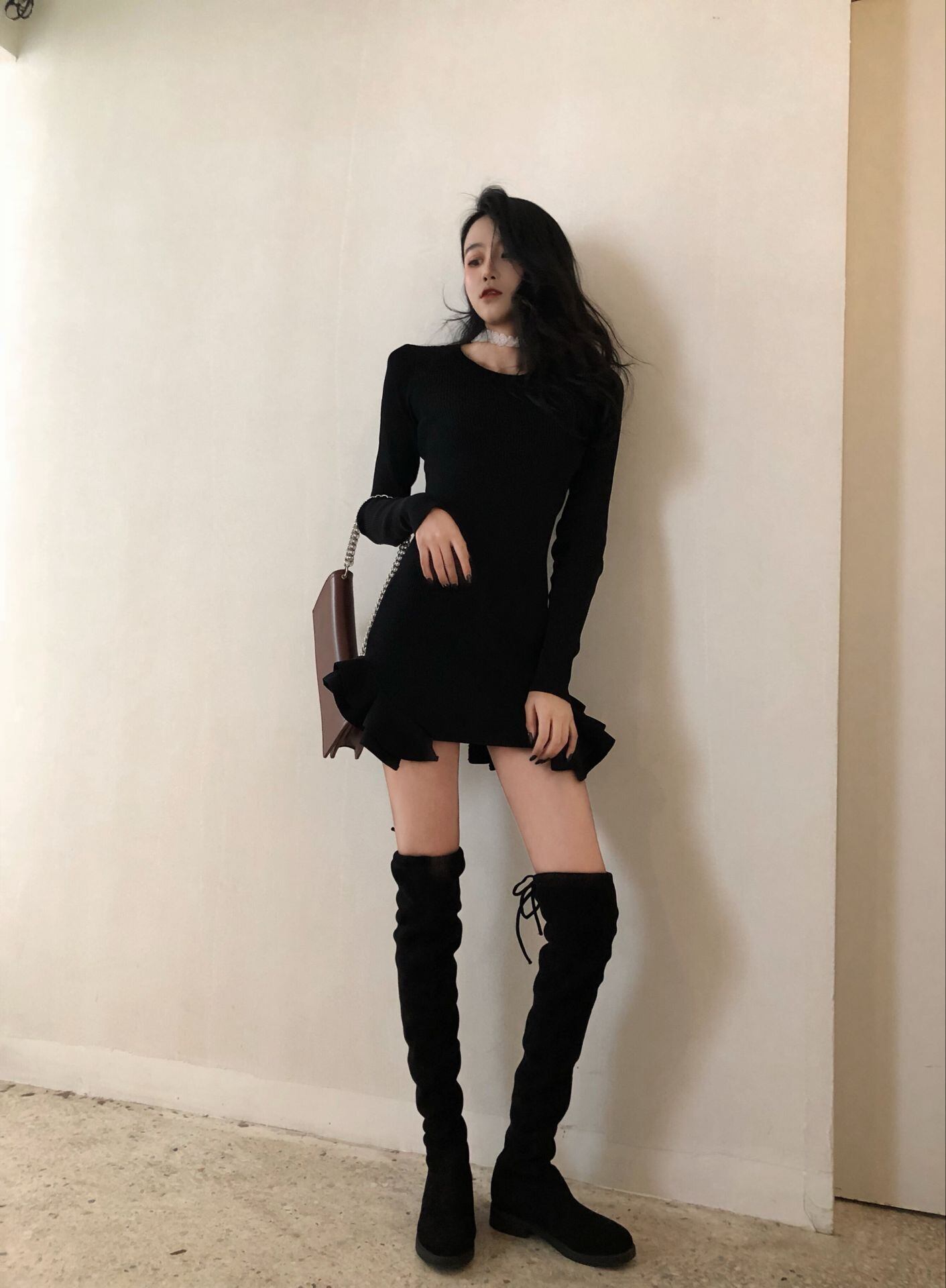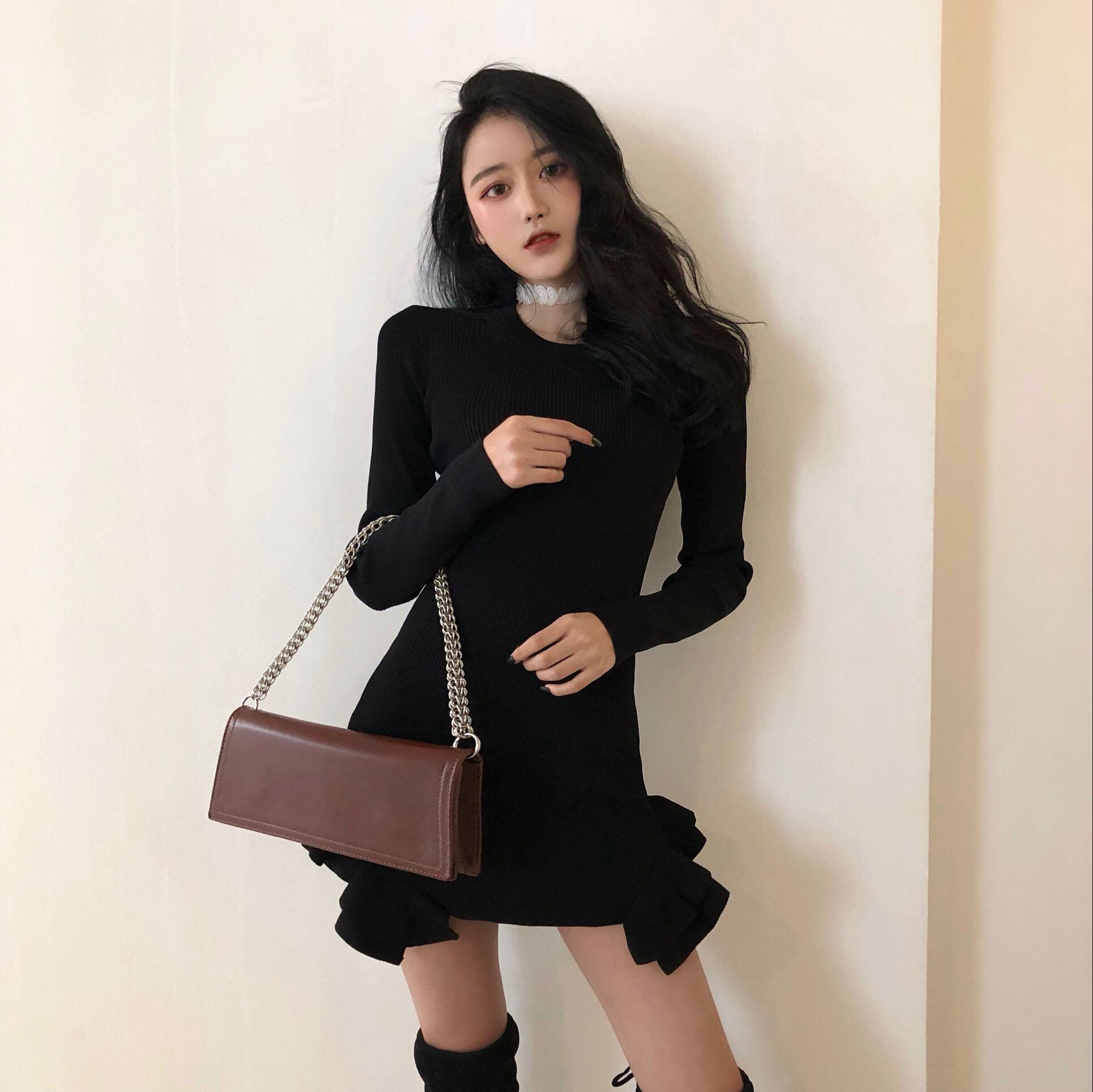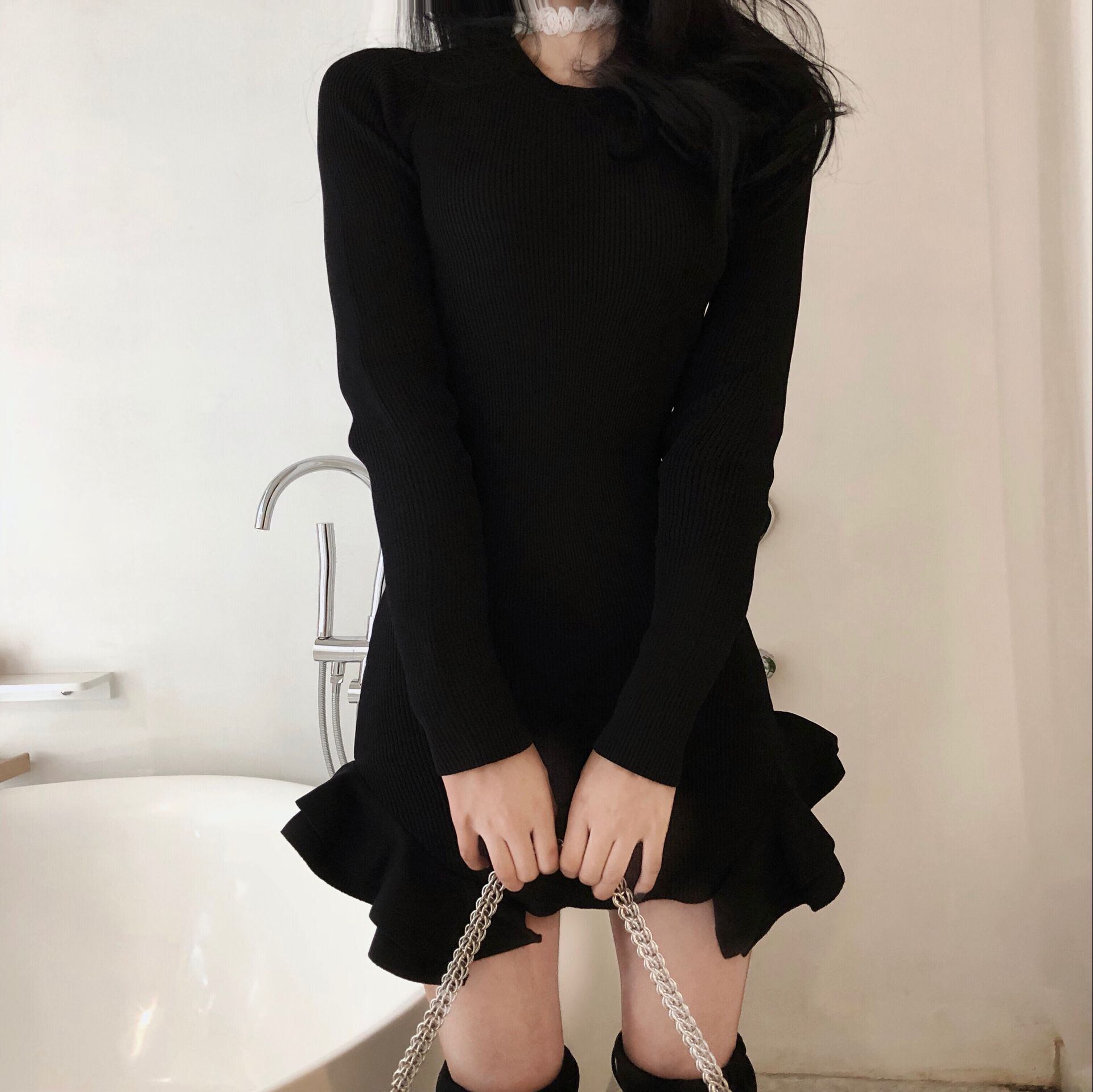ワンピース レディース 2色 フリルスカート 長袖 ミニ 韓国 ファッション コーデ おすすめ カジュアル きれいめ 大きいサイズ 人気 ゆったり 20代 30代 40代 50代