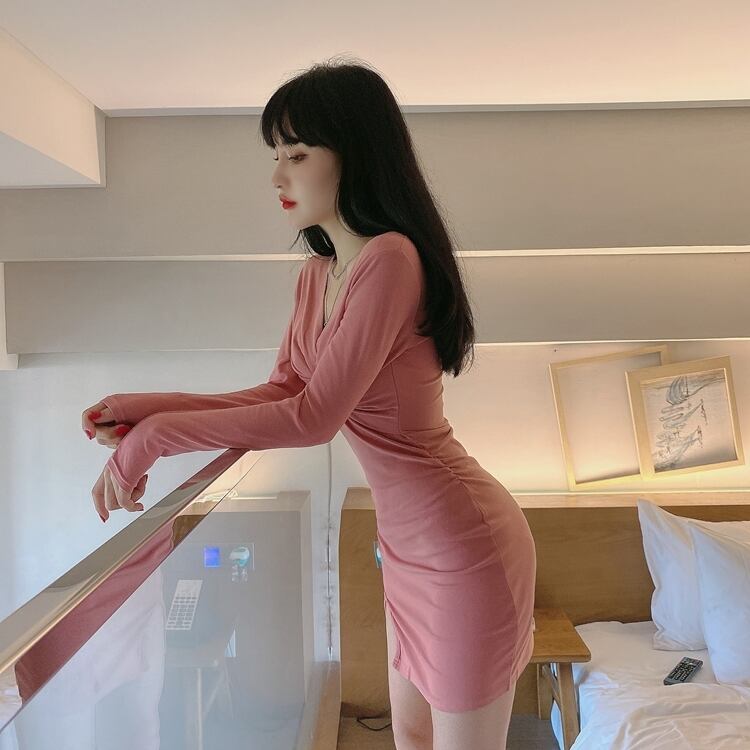 ワンピース レディース 2色 Vネック 長袖 ミニ セクシー 韓国 ファッション コーデ おすすめ カジュアル きれいめ 大きいサイズ 人気 ゆったり 20代 30代 40代 50代