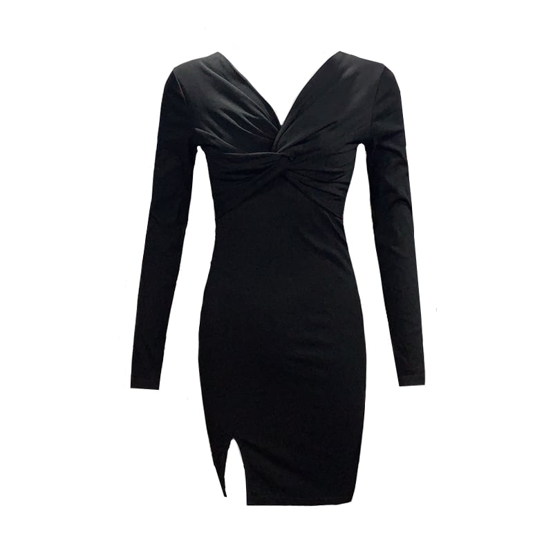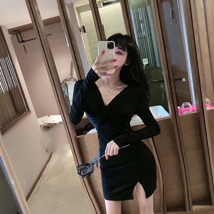 ワンピース レディース 2色 Vネック 長袖 ミニ セクシー 6586a