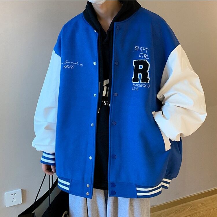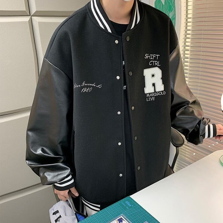 スタジャン メンズ 2色 スウェット ゆったり オーバーサイズ ヒップホップ系 ストリート系 B系 1008a