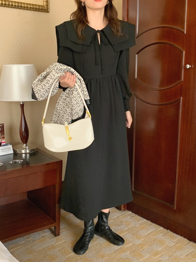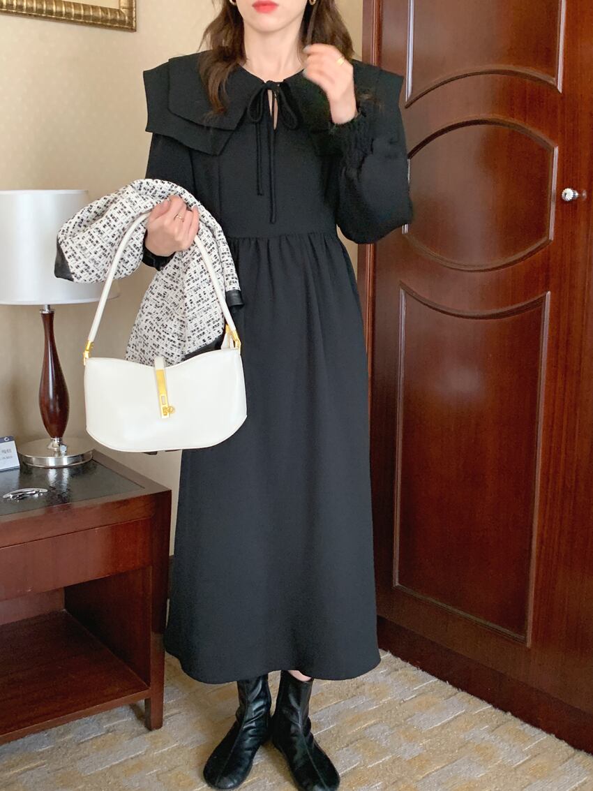 ワンピース ドレス レディース 黒 長袖 パフスリーブ 韓国系 韓国 ファッション コーデ おすすめ カジュアル きれいめ 大きいサイズ 人気 ゆったり 20代 30代 40代 50代