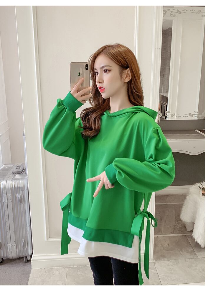 ★特徴:ゆったりめのサイズ感で重ね着風のデザインでおしゃれなプルオーバーパーカー。サイドのリボンもかわいい。