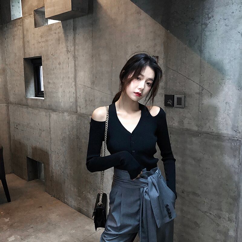カーディガン オフショルダー レディース 黒 長袖 Vネック 韓国 ファッション コーデ おすすめ カジュアル きれいめ 大きいサイズ 人気 ゆったり 20代 30代 40代 50代