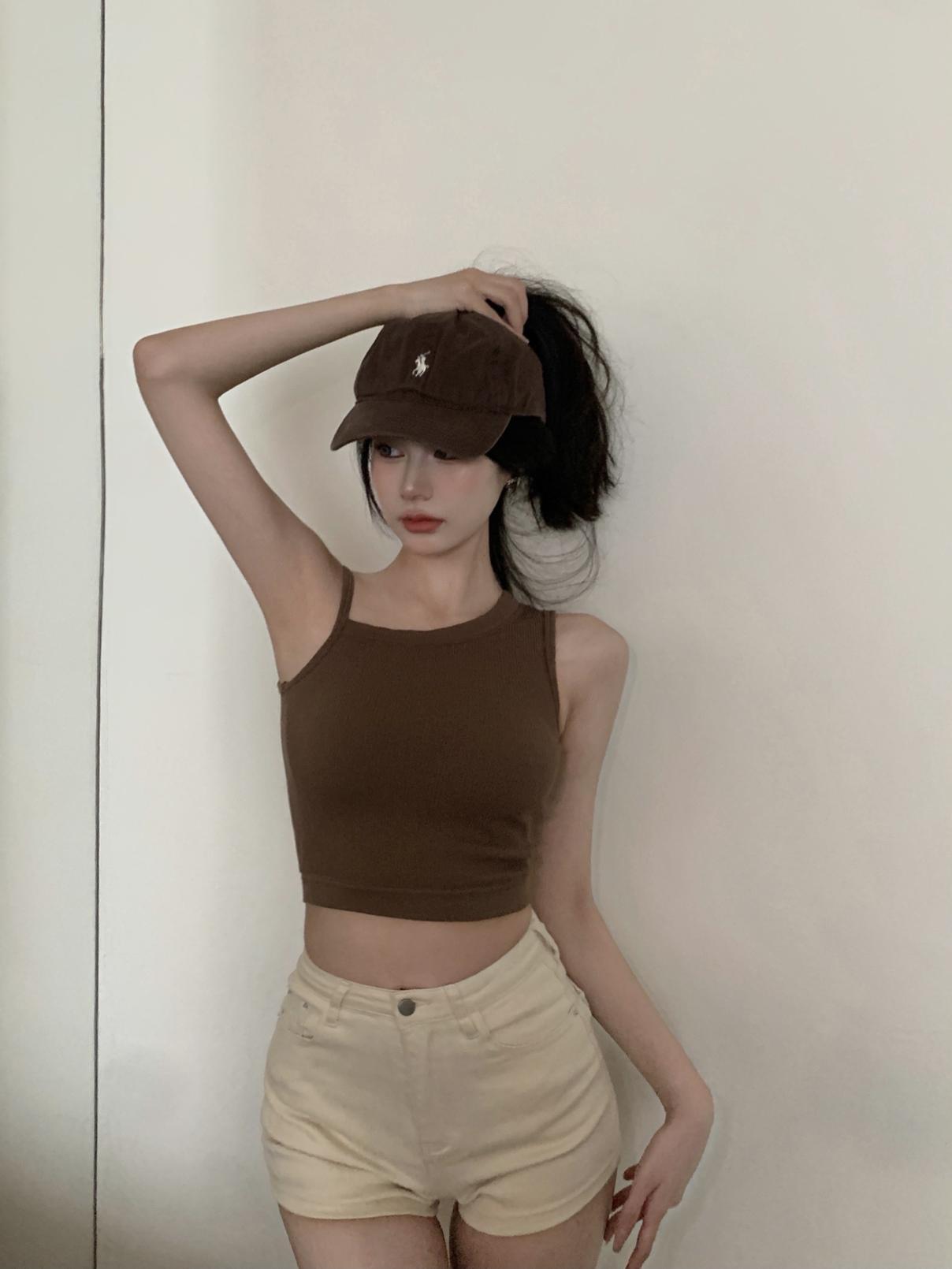 ★特徴:胸パッド付きのタンクトップ。春夏のカジュアルコーデに