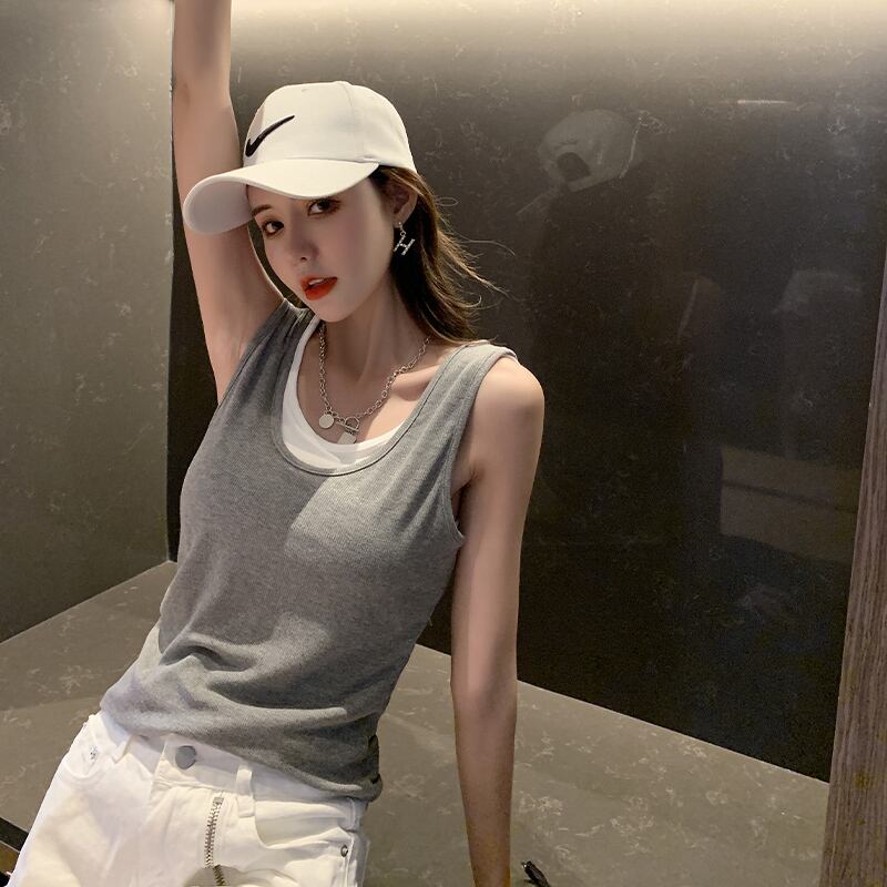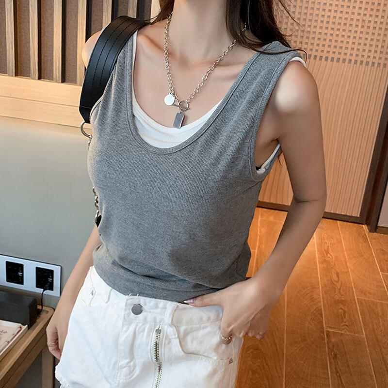 タンクトップ ノースリーブ レディース 2色 カジュアル 重ね着風 1235a 韓国 ファッション コーデ おすすめ カジュアル きれいめ 大きいサイズ 人気 ゆったり 20代 30代 40代 50代