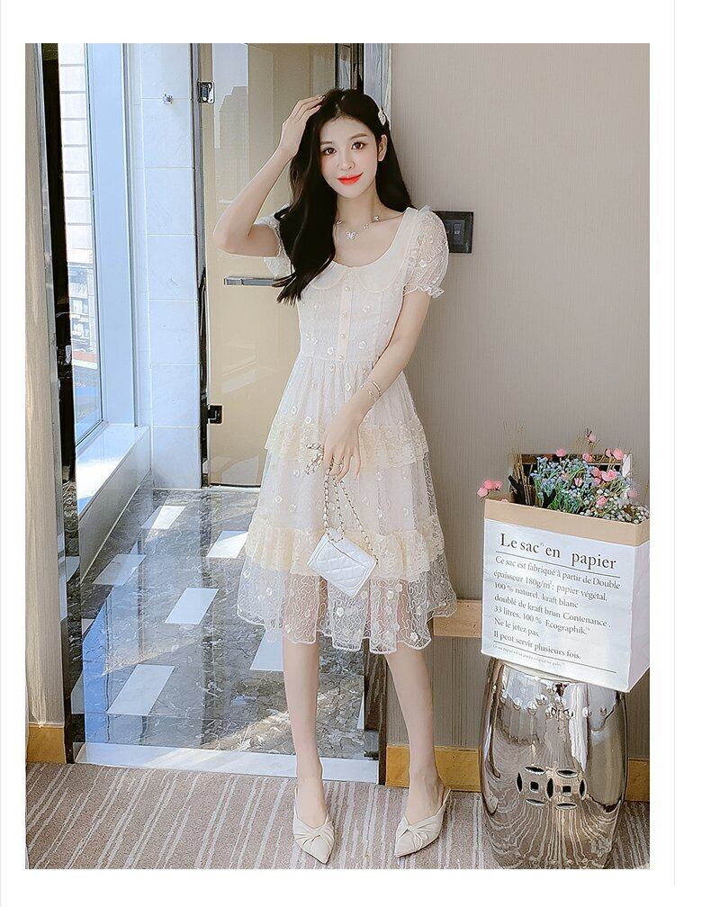 ワンピース ドレス レディース ベージュ お出かけ Aライン 結婚式 二次会 韓国 ファッション コーデ おすすめ カジュアル きれいめ 大きいサイズ 人気 ゆったり 20代 30代 40代 50代