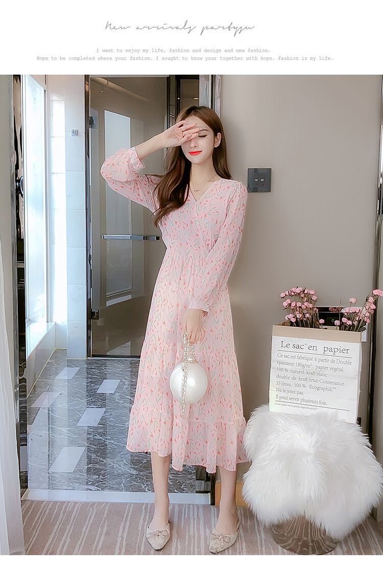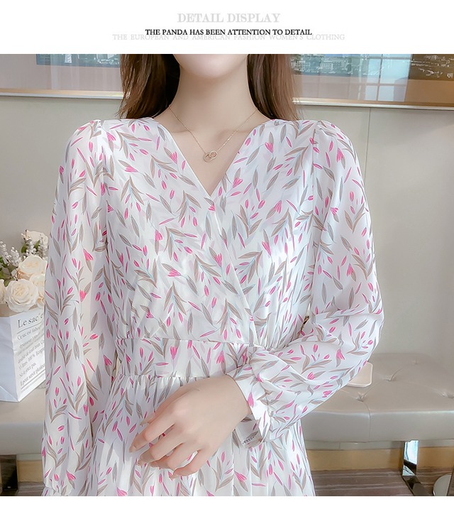 ワンピース きれいめ レディース 2色 花柄 長袖 Vネック おしゃれ 1255a