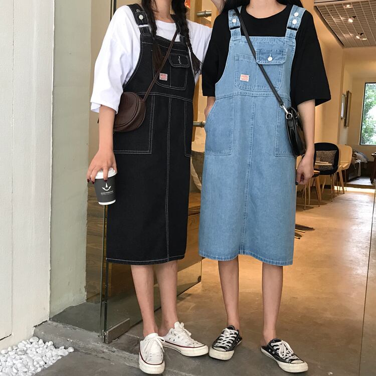 サロペットスカートオーバーオール ジャンパースカート レディース 2色 デニム カジュアル 1261a