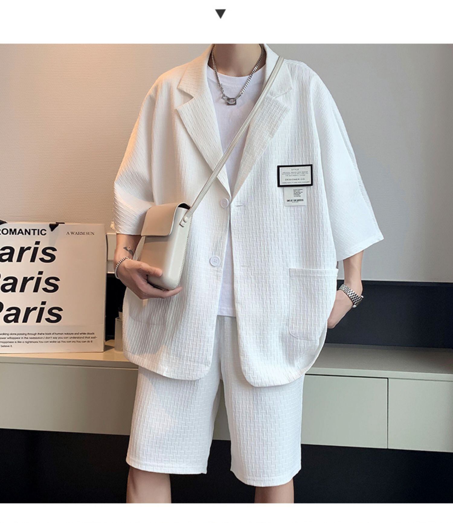 セットアップ 春夏 七部袖 ショートパンツ メンズ 2色 上下セット ストリート系 B系 カジュアル ゆったり 韓国 ファッション コーデ おすすめ カジュアル きれいめ 大きいサイズ 人気 ゆったり 20代 30代 40代 50代
