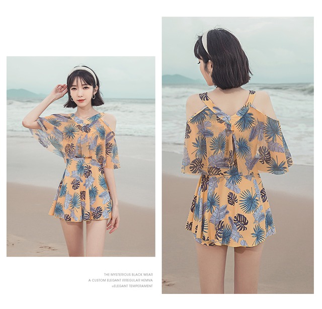 水着 ワンピース水着 レディース 2色 植物柄 スイムウェア ビーチウェア 可愛い 韓国 ファッション コーデ おすすめ カジュアル きれいめ 大きいサイズ 人気 ゆったり 20代 30代 40代 50代