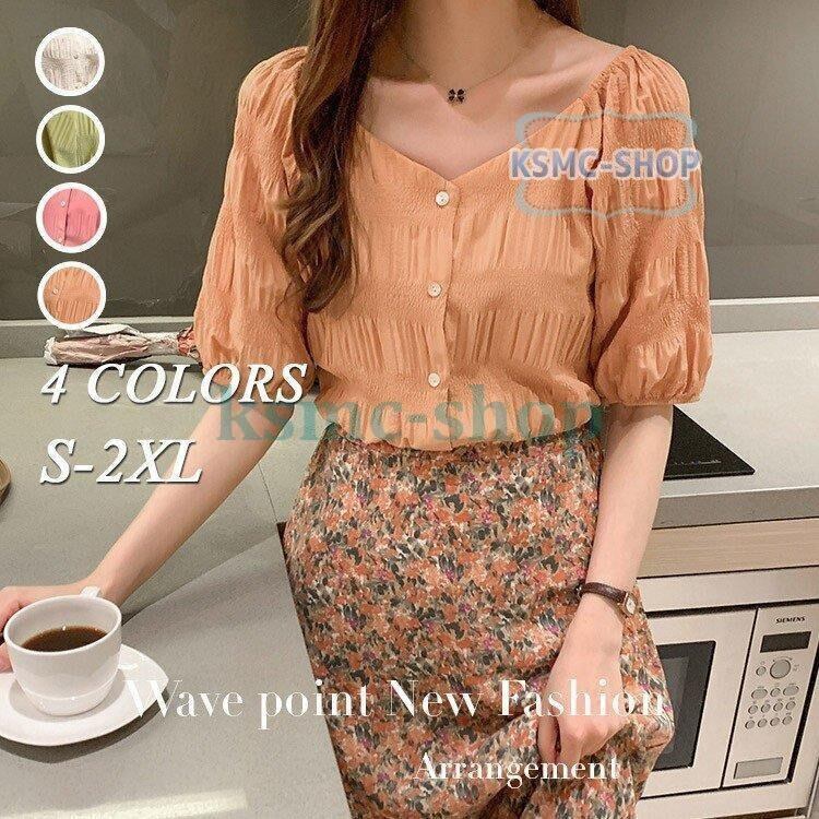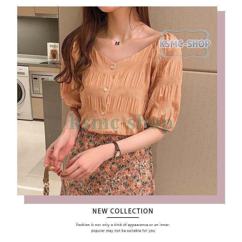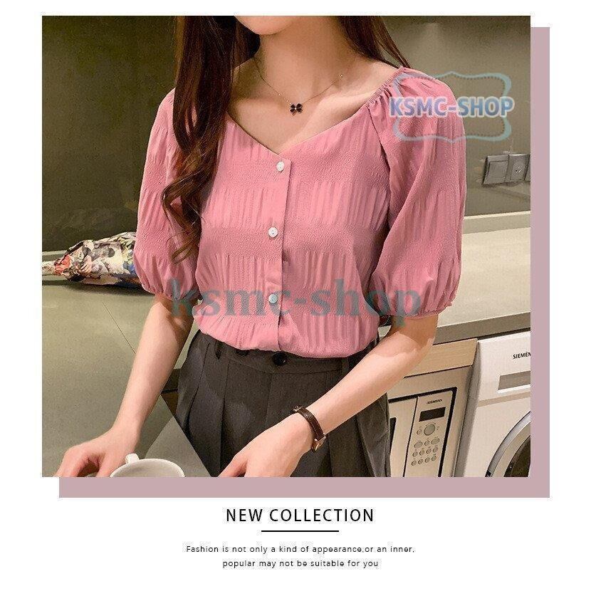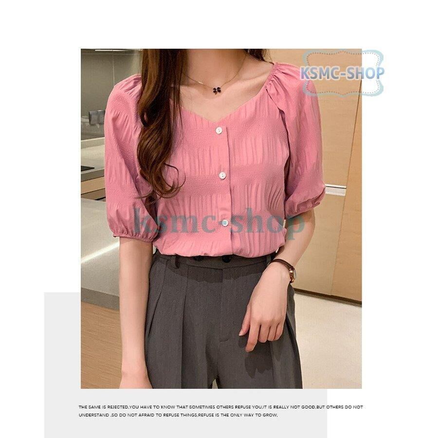 ブラウス レディース 4色 春夏 vネック パフスリーブ 大人 トップス 韓国風 韓国 ファッション コーデ おすすめ カジュアル きれいめ 大きいサイズ 人気 ゆったり 20代 30代 40代 50代