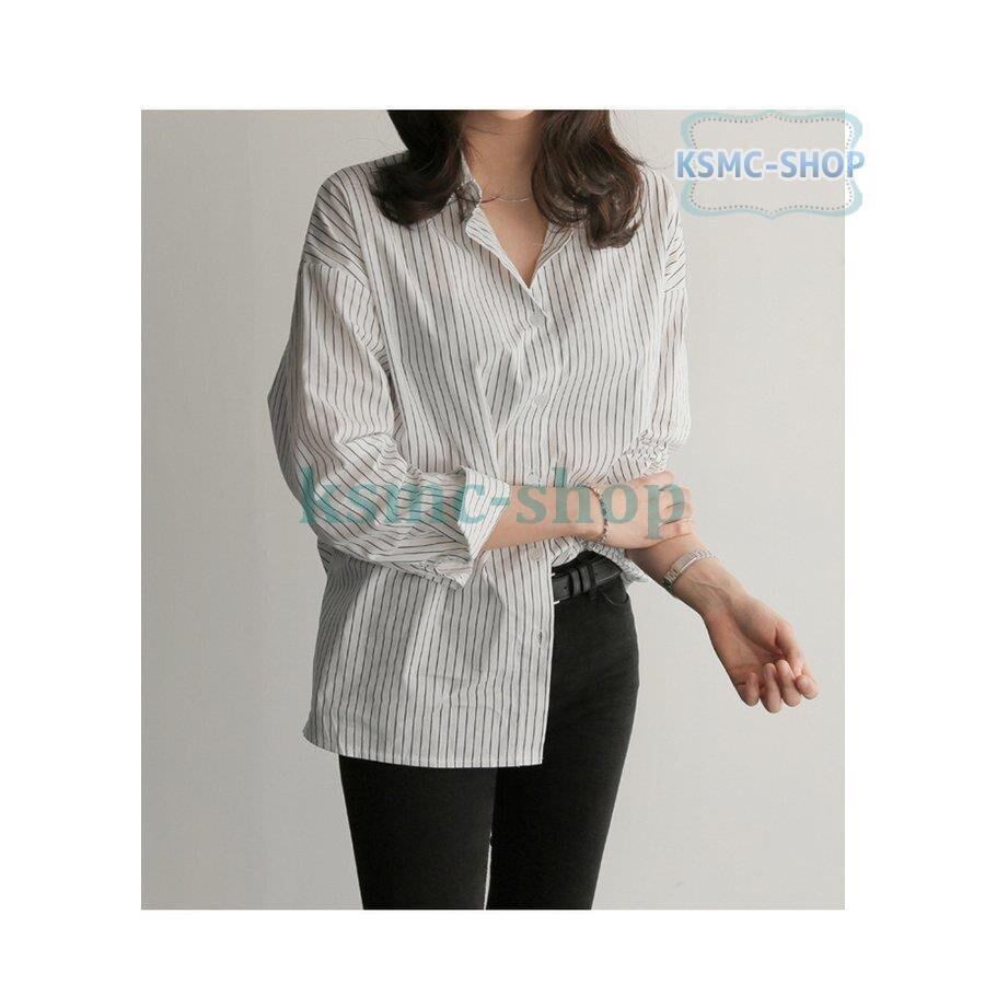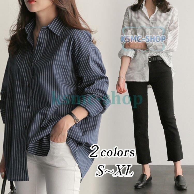 ブラウス シャツ レディース 2色 ストライプ 春夏 大人 韓国風 韓国 ファッション コーデ おすすめ カジュアル きれいめ 大きいサイズ 人気 ゆったり 20代 30代 40代 50代