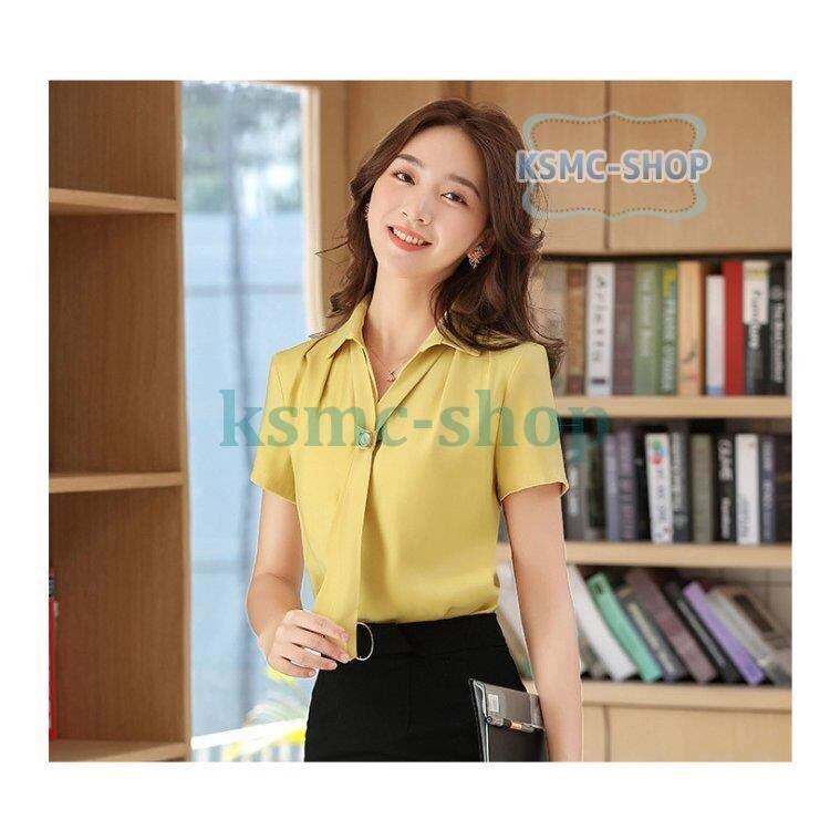 ブラウス シャツ 半袖 レディース 3色 無地 Vネック 春夏 大人 韓国風 6780
