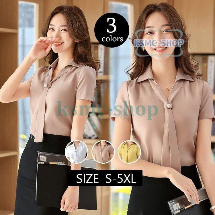 ブラウス シャツ 半袖 レディース 3色 無地 Vネック 春夏 大人 韓国風 韓国 ファッション コーデ おすすめ カジュアル きれいめ 大きいサイズ 人気 ゆったり 20代 30代 40代 50代