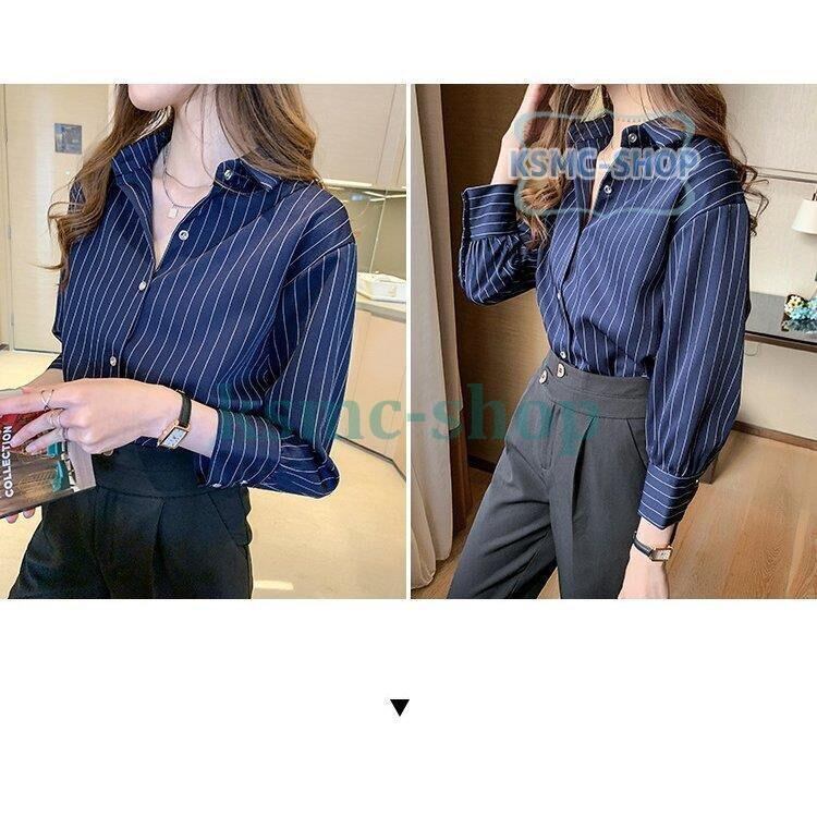 ブラウス シャツ 七分袖 レディース 2色 ストライプ きれいめ 春夏 大人 韓国風 韓国 ファッション コーデ おすすめ カジュアル きれいめ 大きいサイズ 人気 ゆったり 20代 30代 40代 50代