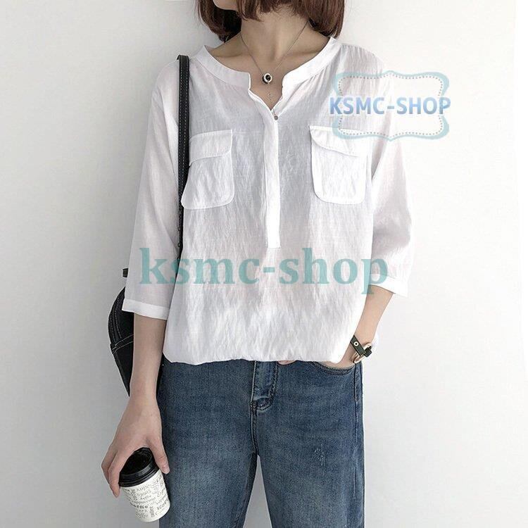ブラウス シャツ 七分袖 レディース 3色 ゆったり カジュアル 春夏 韓国風 韓国 ファッション コーデ おすすめ カジュアル きれいめ 大きいサイズ 人気 ゆったり 20代 30代 40代 50代