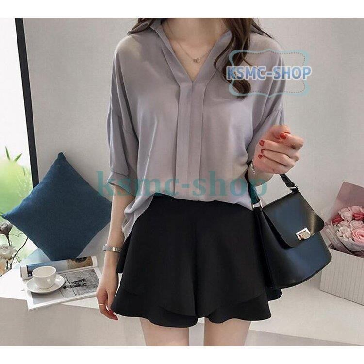 ブラウス シャツ 五分袖 レディース 3色 Vネック ゆったり 春夏 韓国風 6795