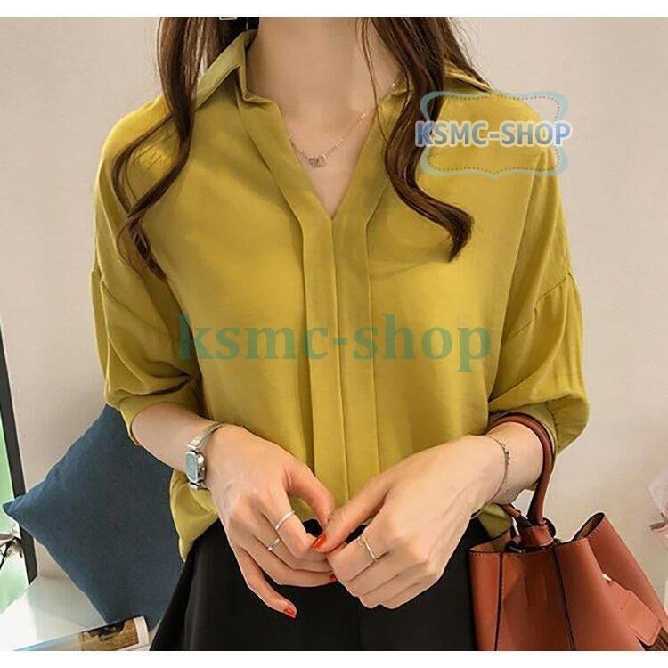 ブラウス シャツ 五分袖 レディース 3色 Vネック ゆったり 春夏 韓国風 韓国 ファッション コーデ おすすめ カジュアル きれいめ 大きいサイズ 人気 ゆったり 20代 30代 40代 50代
