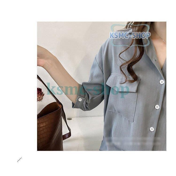 ブラウス シャツ 七分袖 レディース 3色 ストライプ きれいめ 春夏 韓国風 韓国 ファッション コーデ おすすめ カジュアル きれいめ 大きいサイズ 人気 ゆったり 20代 30代 40代 50代