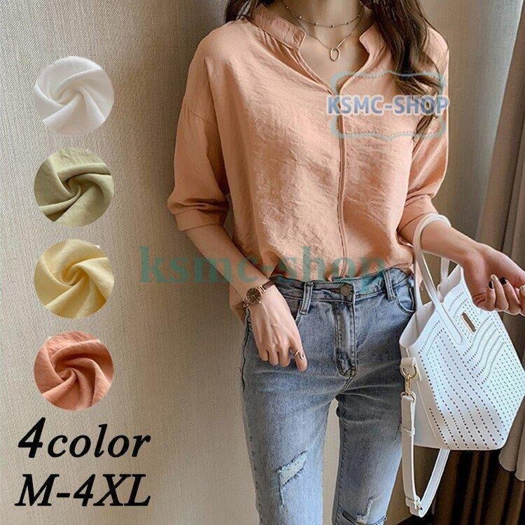 ブラウス シャツ 五分袖 レディース 4色 Vネック おしゃれ 春夏 韓国風 韓国 ファッション コーデ おすすめ カジュアル きれいめ 大きいサイズ 人気 ゆったり 20代 30代 40代 50代